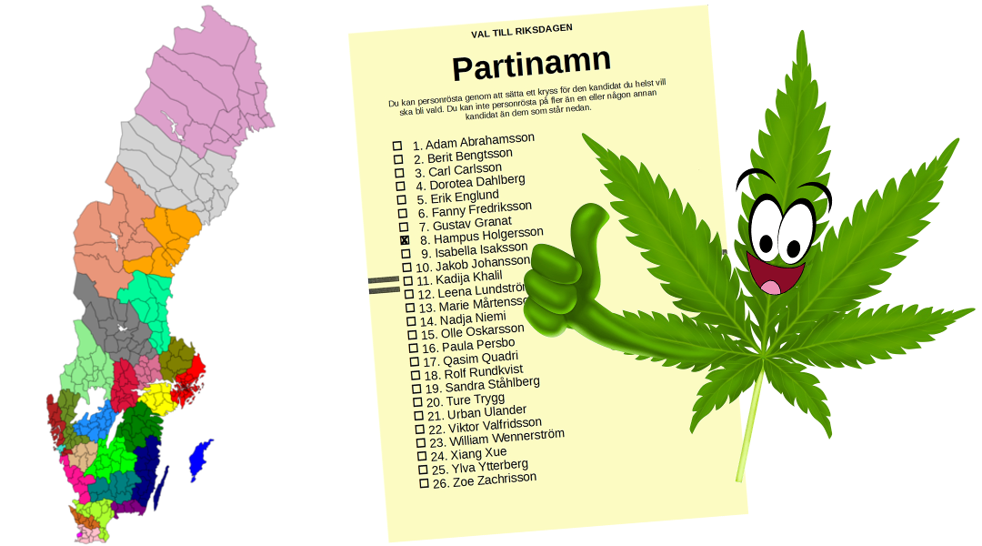 Därför kommer Cannabiskrysset presentera olika kandidater i de 29 olika valkretsarna.